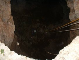 Fotos de la Espeleología en Sima Grande, que tuvo lugar el día 03-02-2007 en la zona kárstica de Los Losares dentro del Espacio Protegido del Cañón de Almadenes (Cieza), a la que asistieron Floren, María y Juan. Esta sima, aunque tiene un pequeño recorrido interno, tiene un rapel de 13 metros, gran parte de ellos en volao.