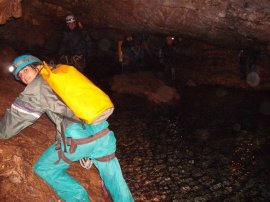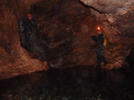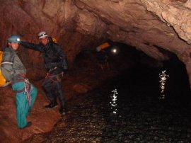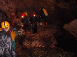 Fotos de la Espeleología en la Cueva de los Chorros del Río Mundo II, que tuvo lugar los días 21 y 22 de noviembre de 2009 en el Parque Natural del Calar del Río Mundo (Albacete), al que asistieron Marina, María, Eloísa, Andrés y Juan, junto con Perdi, Vicente y Jesús de Arxhilasis. Visitamos esta gran cueva, en la que atravesamos el curso activo del Río Mundo, y navegamos a través del Lago Verde hasta llegar al Río Blanco.