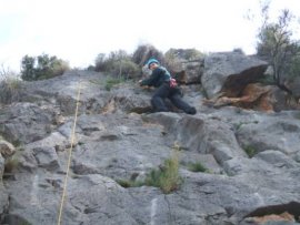 Fotos de la Escalada en El Valle V, que tuvo lugar el 18-02-2007 en el Parque Regional de Carrascoy y El Valle, a la que asistieron Floren, Marina y Juan. Escalamos las vías "Fúmate el inglés", "El pepe ibérico" (ambas de grado IV+) y la vía "Adiós tristeza" de grado 6a, todas ellas de 15 metros situadas en el sector I.