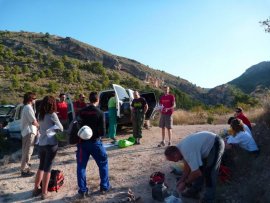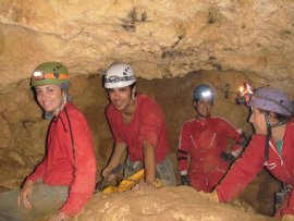 Fotos del I Curso de Descubrimiento de Espeleología, organizado e impartido por el Grupo Vértigo y homologado por la Escuela Murciana de Espeleología, que tuvo lugar el 12-9-2010 en Cueva Solins (Parque Regional de la Sierra de la Pila, Fortuna). Asistieron Juan y Marina Melgares y el curso contó con un total de 11 alumnos.