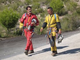 Fotos de la parte específica del Curso de Técnico Deportivo en Espeleología Nivel I, impartido por la Escuela Murciana de Espeleología (EME), que tuvo lugar los fines de semana 4-5 de septiembre (Caravaca-Alcantarilla), 25-26 de septiembre (Alcantarilla - Cieza), 9-10 de octubre (Torre Pacheco - Alcantarilla), 23-24 de octubre (Cieza - Calasparra) y 13 de noviembre (Cieza), en el que participó Juan, junto con Vicente y Fran de Arxhilasis, Jesús del GEL, etc, que los habilita para ser monitores de Espeleología y Descenso de Cañones en la EME.