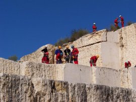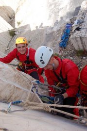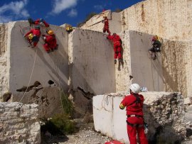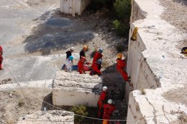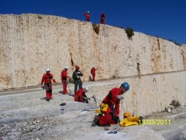 Fotos del Simulacro de Espeleosocorro del Grupo de Espeleosocorro de la Federación de Espeleología de la Región de Murcia, que tuvo lugar el 13-03-2011 en la Cantera de los Losares (Espacio Natural protegido del Cañón de Almadenes), al que asistió Juan junto con Vicente, Sergio y Jesús de Arxhilasis. Hubo una demostración de utilización de explosivos para desobstrucción.
