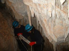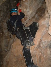 Fotos de la Espeleología en la Sima Blanca, que tuvo lugar el 11-03-2007 en la Sierra de Ricote, al que asistieron Marina, Floren y Juan. La sima tiene un recorrido de 235 metros y una profundidad de 41 metros, aunque no es necesario material de verticales. Utilizamos una escala para los destrepes más complicados. La sima es de una singular belleza, plagada de extrañas formaciones y estalactitas, con una gran colada en la mayor parte del descenso, y como su propio nombre indica, es muy blanca. Los nombres de las salas son inventados por nosotros mismos, para aclarar las fotos.