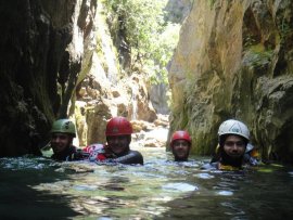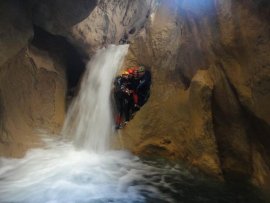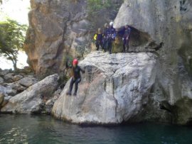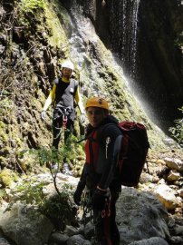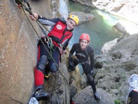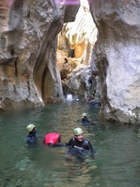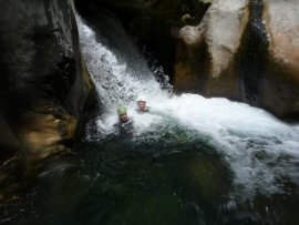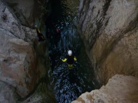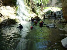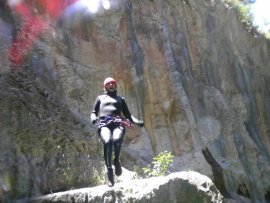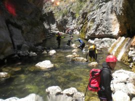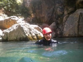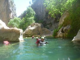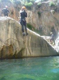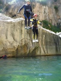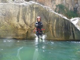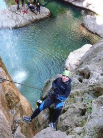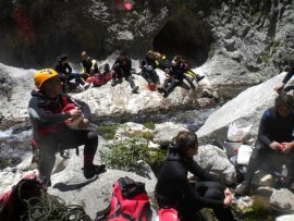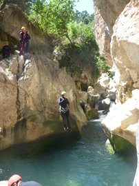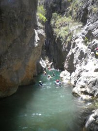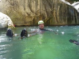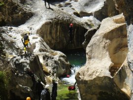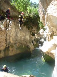 Fotos del V Curso de Descubrimiento de Barranquismo que tuvo lugar el 12-06-2012 en el Barranco de la Bolera, en el Parque Natural de la Sierra de Cazorla, Segura y las Villas (Jaén), curso organizado por el Grupo Vértigo y homologado por la Escuela Murciana de Espeleología, al que asistió Juan como técnico de la escuela.