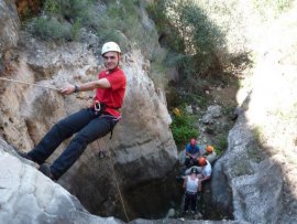 Fotos del Curso de Iniciación al Barranquismo organizado por la EME al que asistió Juan como Técnico de la Escuela a las prácticas que se realizaron en el Barranco de la Higuera el día 8-5-11, junto a Vicente (Arxhilasis), Jesús (GEL) y Belchí (GEVA).