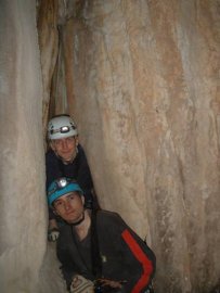 Fotos de la Espleleología en la Sima de las Cabras, que tuvo lugar el 18-03-2007 en el Parque Regional de la Sierra de la Pila (Fortuna) a la que asistieron María, Floren y Juan. La Sima de las Cabras tiene dos entradas, una longitud de 340 metros y una profundidad de 52-63 metros, bajando varios pozos y destrepes. Tardamos 6 horas en recorrerla, y nos faltó por ver la Zona B. Tiene unas enormes salas con formaciones gigantes de todas las formas y colores. Abajo podéis ver el perfil de la sima.