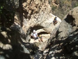 Fotos del Curso de Barranquismo que tuvo lugar el fin de semana del 7 y 8 de julio de 2007 en Alcantarilla y en el Barranco de la Higuera (Espacio Natural Protegido del Cañón de Almadenes, Cieza), al que asistieron Juan y Fran (Arxhilasis). El barranco estaba seco. El curso fue impartido por profesores de la Escuela Murciana de Espeleología (EME), perteneciente a la Federación de Espeleología de la Región de Murcia (FERM).