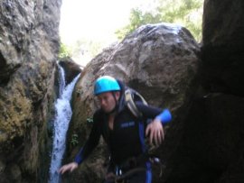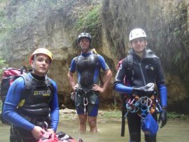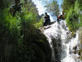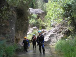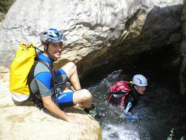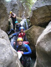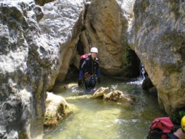 Fotos del Barranquismo en el Arroyo de la Espinea, que tuvo lugar el 18-08-2007, en el Parque Natural de la Sierra de Cazorla, Segura y las Villas (Jaén) y el Parque Natural de los Calares del Mundo (Albacete), al que asistieron Juan y Floren, en una actividad conjunta con el Grupo Arxhilasis. Bonito arroyo y cañón, pero tiene poco de barranco.
