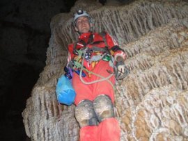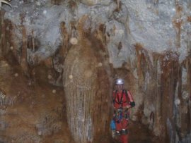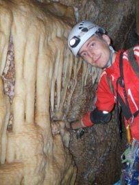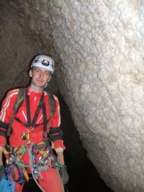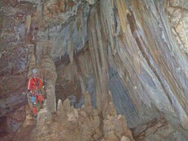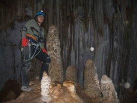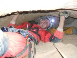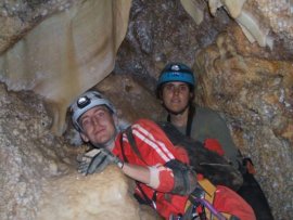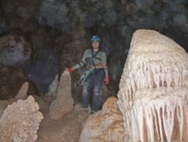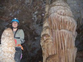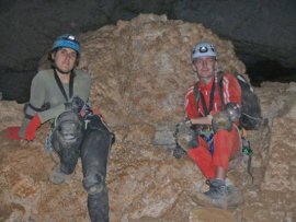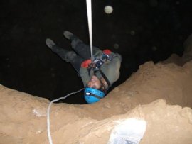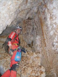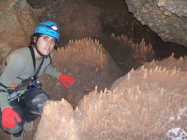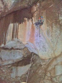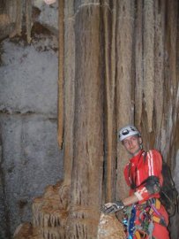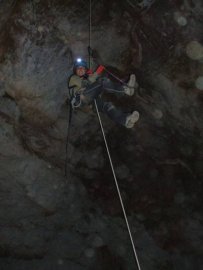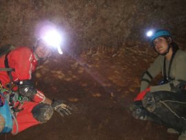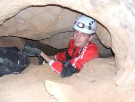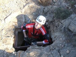 Fotos de la Espeleología en la Sima de la Plata I que tuvo lugar el 30-09-2007 en el futuro Parque Regional de la Sierra de la Muela, Cabo Tiñoso y Roldán (Isla Plana, Cartagena), a la que asistieron Marina y Juan. Se entra por un pequeño pozo, luego una gatera de unos 10 metros en la que tocas con pecho y espalda, luego una diaclasa muy inclinada de otros 10 metros, y finalmente un pozo de unos 15-20 metros de volao que llega a una sala gigante plagada de formaciones de todo tipo, que dan alas a la imaginación. Abajo podéis ver la topo y el recorrido realizado.