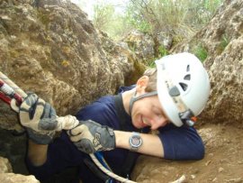 Fotos de la I Acampada Espeleológica del Grupo Vértigo que tuvo lugar en Antequera (Málaga) y en la Sierra de la Camorra (Mollina, Málaga) los días 13 y 14 de octubre de 2007, a la que asistieron Eloísa, María, Juan y Vicente (Arxhilasis). Bajamos a dos espectaculares simas: la Sima del Águila o de los Gours (-112 metros, Antequera) y Sima Begoña (-34 metros, Mollina), disfrutamos de lo lindo y nos reimos un montón. El segundo día gozamos de la compañía de Mariajo (forera PSP, con la que estuvimos en el 1er encuentro PSP). Agradecemos su colaboración, así como la de Davidespeleo, Geochema, Vitelchus e Iñakiespeleo. Abajo podéis ver las topos de ambas simas.