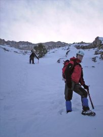 Fotos de la Ascensión a la Sagra III, que tuvo lugar en la provincia de Granada el 23-12-2008, a la que asistieron Juan junto con Vicente y Perdi de Arxhilasis, a los que posteriormente tras la ascensión se unieron Floren y Viqui, y más tarde María. La subida y la bajada la hicimos por el embudo, con nieve dura la mayor parte del tiempo.