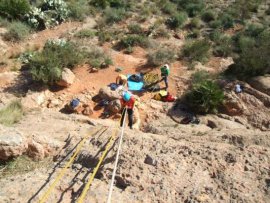 Fotos de la iniciación a las Técnicas de Progresión Vertical en el Paisaje Lunar I, que tuvo lugar el 03-01-2007 en el Parque Regional de Carrascoy y El Valle, a las que asistieron Pablo, Pablo Francés, Marina y Juan. Allí hicimos escalada en la vía "Espolón de la sinfonía" de grado V+ y 16 metros de longitud, rapel y progresión vertical con ascensores (puño y croll) para practicar para futuras espeleologías en cuevas y simas.
