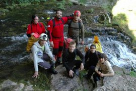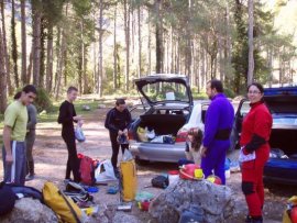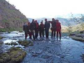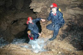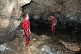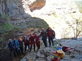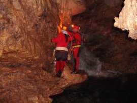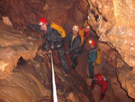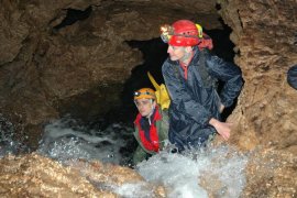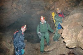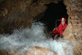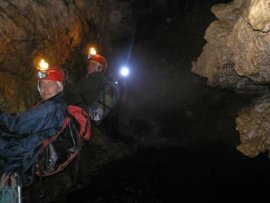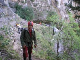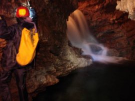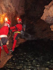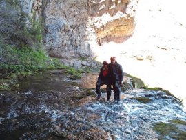 Fotos de la Espeleología en la Cueva de los Chorros I, que tuvo lugar el 03-05-2009 en el Parque Natural de los Calares del Río Mundo, a la que asistieron Juan y Eloísa, junto con Perdi y Vicente de Arxhilasis, y Belchí, Pepi, y Alejandro del GEVA. Visitamos esta impresionante cueva de kilómetros de longitud con un río subterráneo que comienza a 100 metros de altura en la cascada del nacimiento del Río Mundo. Llegamos hasta el Lago del Brillo, casi al final de la Cueva sin equipo de buceo, cerca del Sifón Vera.