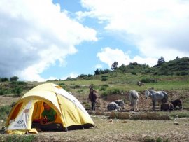 Fotos del Trekking en la Región del Dolpo, en la Cordillera del Himalaya (Nepal) que tuvo lugar entre los días 7 y 30 de agosto de 2009, a la que asistió Juan, junto con Choni y Roberto. Una gran experiencia en la remota región del Dolpo, la zona más aislada del Himalaya nepalí, donde hasta hace unos años no se permitía el acceso a occidentales, y a la que llegamos cogiendo 5 aviones. En la zona hay un pequeño aeropuerto colgante de tierra, y ni una sola carretera, ni coches. Desde algunas poblaciones para llegar a un hospital una decena de dias andando y dos de coche. Sin duda, el culo del mundo, con tradiciones milenarias...