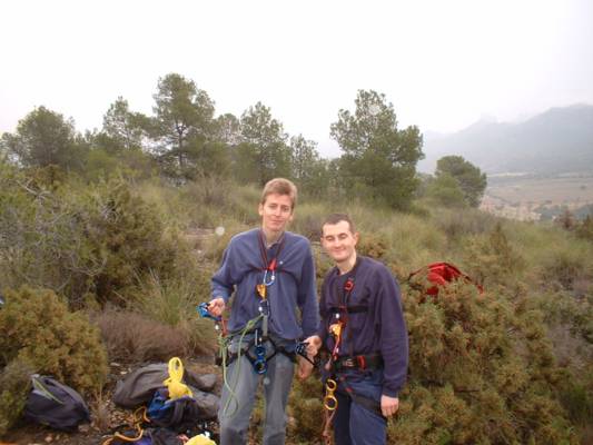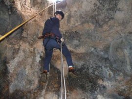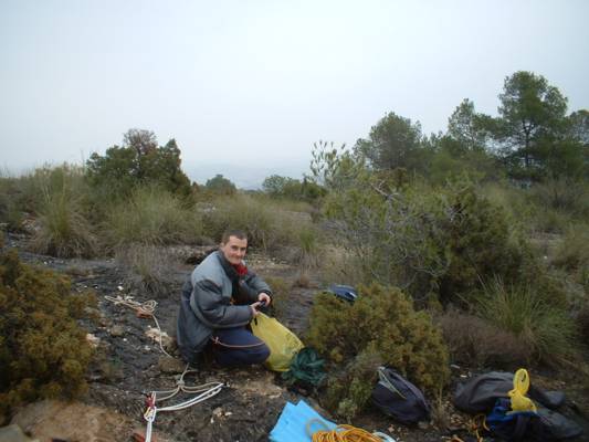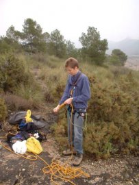 Fotos de la Espeleología en Sima Grande, que tuvo lugar el día 03-02-2007 en la zona kárstica de Los Losares dentro del Espacio Protegido del Cañón de Almadenes (Cieza), a la que asistieron Floren, María y Juan. Esta sima, aunque tiene un pequeño recorrido interno, tiene un rapel de 13 metros, gran parte de ellos en volao.