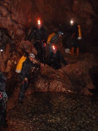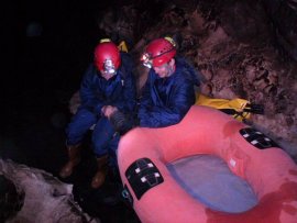 Fotos de la Espeleología en la Cueva de los Chorros del Río Mundo II, que tuvo lugar los días 21 y 22 de noviembre de 2009 en el Parque Natural del Calar del Río Mundo (Albacete), al que asistieron Marina, María, Eloísa, Andrés y Juan, junto con Perdi, Vicente y Jesús de Arxhilasis. Visitamos esta gran cueva, en la que atravesamos el curso activo del Río Mundo, y navegamos a través del Lago Verde hasta llegar al Río Blanco.