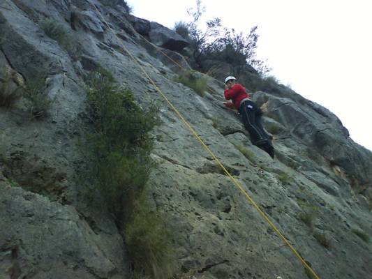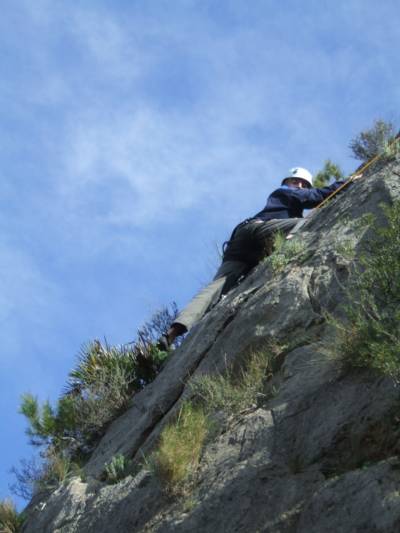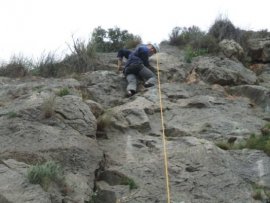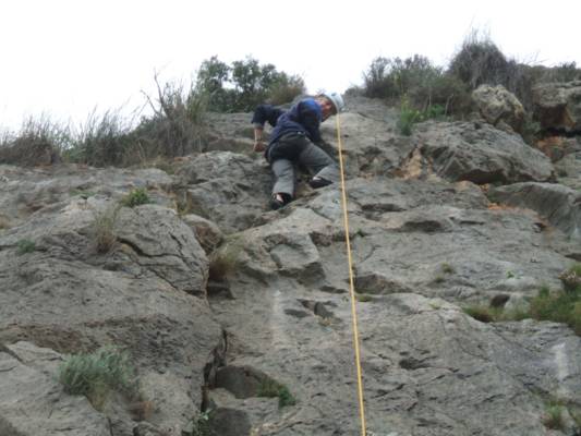Fotos de la Escalada en El Valle V, que tuvo lugar el 18-02-2007 en el Parque Regional de Carrascoy y El Valle, a la que asistieron Floren, Marina y Juan. Escalamos las vías "Fúmate el inglés", "El pepe ibérico" (ambas de grado IV+) y la vía "Adiós tristeza" de grado 6a, todas ellas de 15 metros situadas en el sector I.