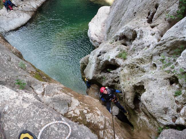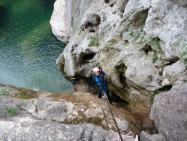Fotos del II Curso de Descubrimiento de Barranquismo organizado e impartido por el Grupo Vértigo y homologado por la EME, que tuvo lugar el 27-06-2010 en el Barranco de la Bolera (Granada) dentro del Parque Natural de Cazorla, Segura y las Villas.