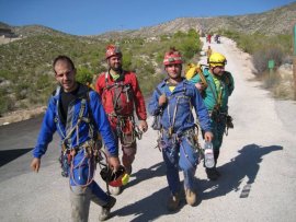 Fotos de la parte específica del Curso de Técnico Deportivo en Espeleología Nivel I, impartido por la Escuela Murciana de Espeleología (EME), que tuvo lugar los fines de semana 4-5 de septiembre (Caravaca-Alcantarilla), 25-26 de septiembre (Alcantarilla - Cieza), 9-10 de octubre (Torre Pacheco - Alcantarilla), 23-24 de octubre (Cieza - Calasparra) y 13 de noviembre (Cieza), en el que participó Juan, junto con Vicente y Fran de Arxhilasis, Jesús del GEL, etc, que los habilita para ser monitores de Espeleología y Descenso de Cañones en la EME.