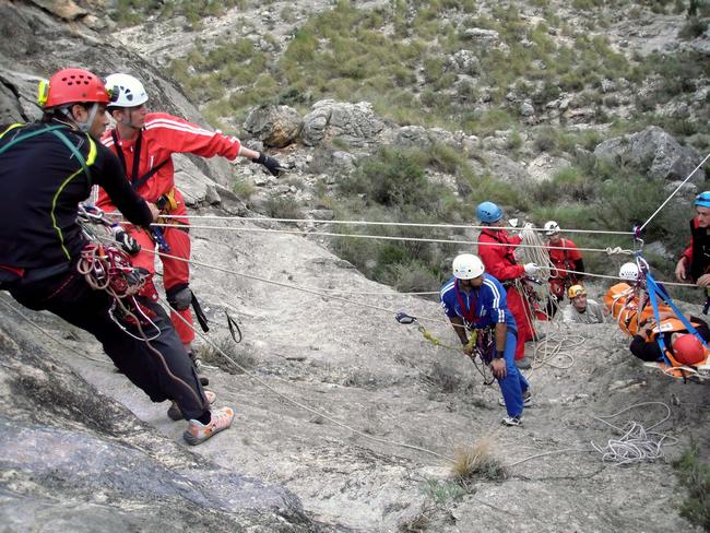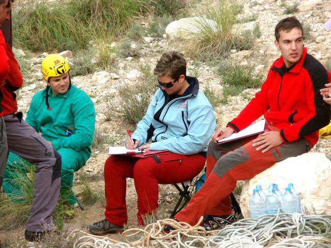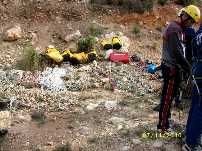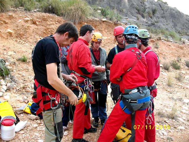 Fotos del Curso de Espeleosocorristas organizado por la Escuela Murciana de Espeleología y el Grupo de Espeleosocorro de la FERM, que tuvo lugar los días 30 y 31 de octubre y 6 y 7 de noviembre en Jumilla, al que asistió Juan, junto con Vicente y Fran de Arxhilasis.