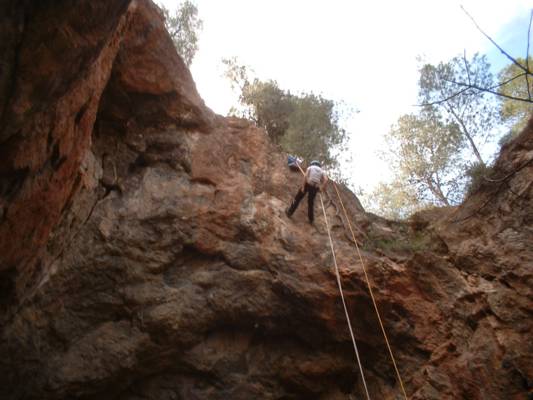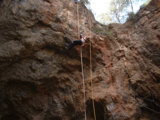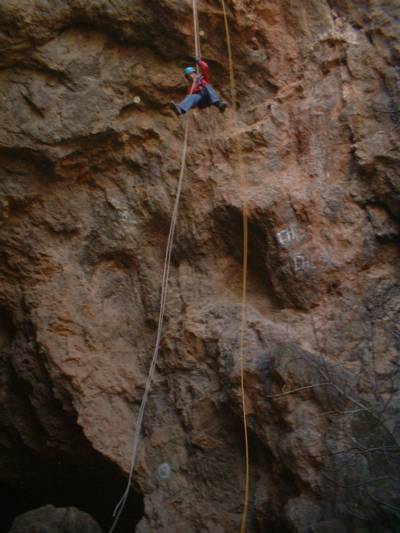 Fotos del Rapel en las Minas del Cerrillar I, situadas en el Parque Regional de Carrascoy y El Valle, que tuvo lugar el 04-03-07, al que asistieron Eloísa, Floren, María, Juan, Amelia y Fran. Se trata de unas minas romanas que tienen un gran pozo de entrada, que permite hacer un emocionante rapel de 20 metros, la mayor parte de ellos en volao. Practicamos rapel en doble con ocho y en simple con stop.