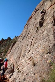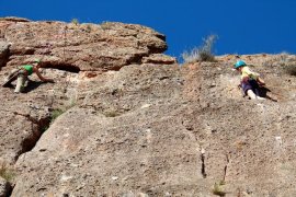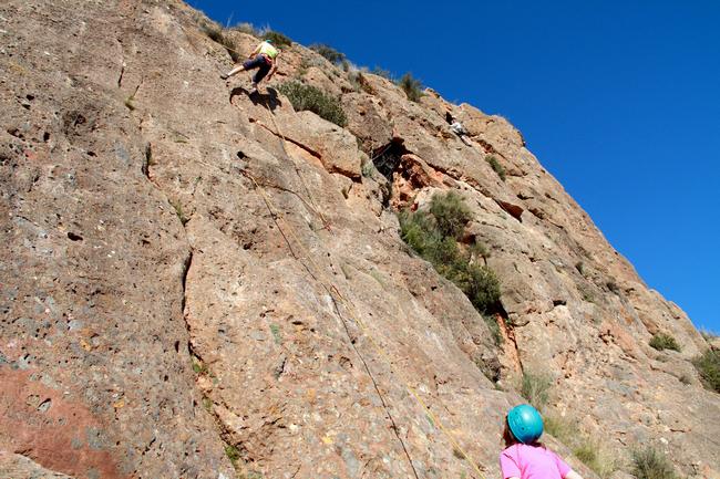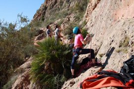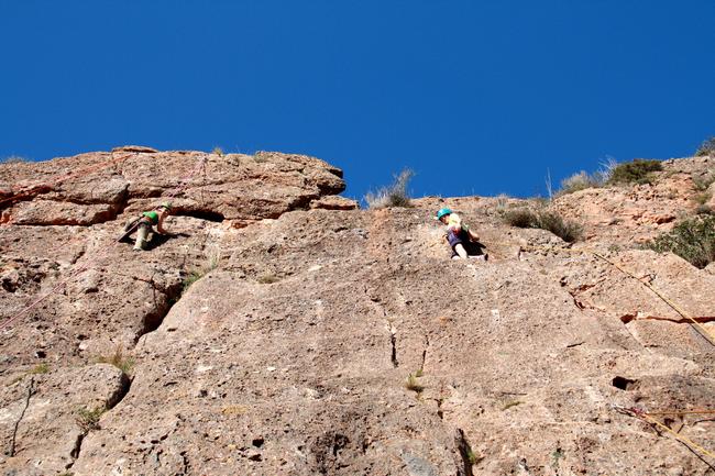 Fotos de la Escalada en la Cresta del Gallo XI, que tuvo lugar el 15-1-2011 en el sector del Paisaje Lunar, en el Parque Regional de Carrascoy y el Valle, a la que asistieron Marina Melgares, Juan, Eloísa, Marina M. Caballero, Rosa y Elena. También vinieron con nosotros Liza y Liza Jr. del Club Resaltes.
