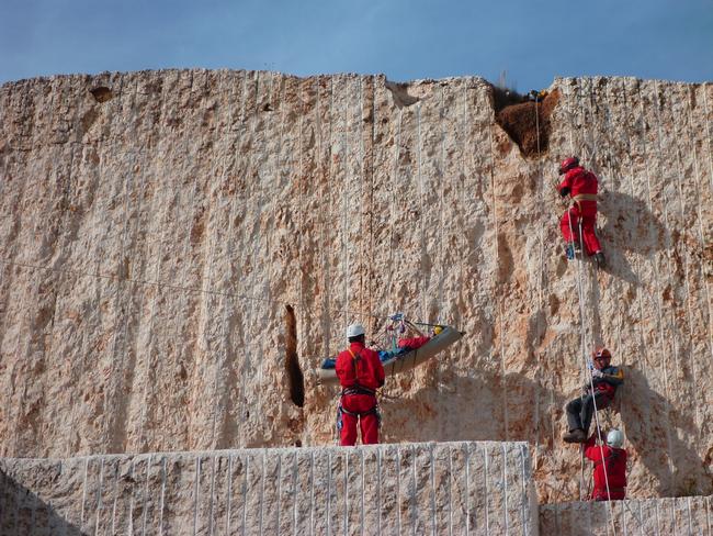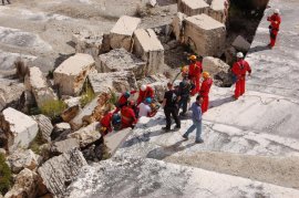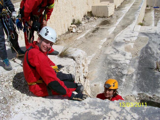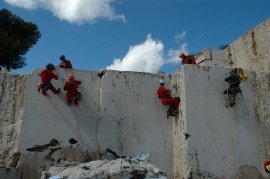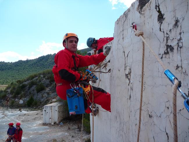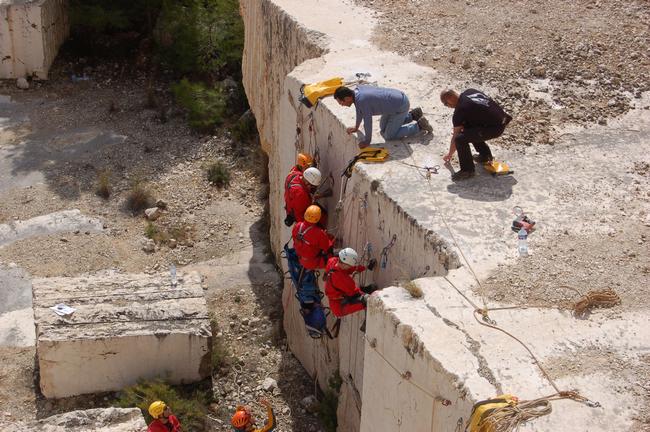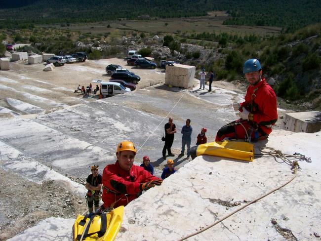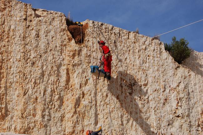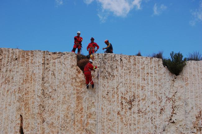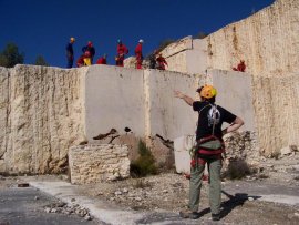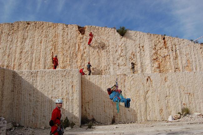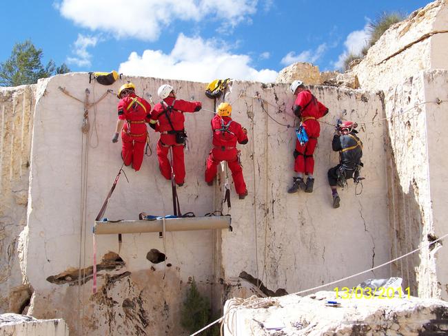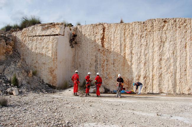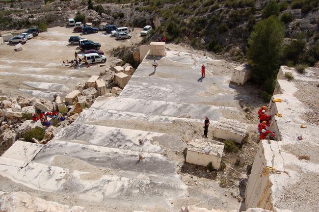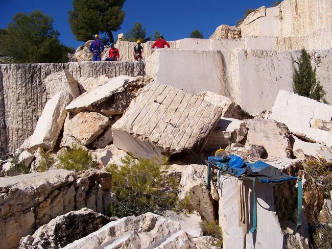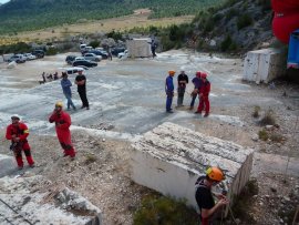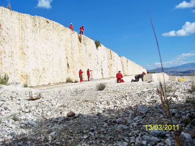 Fotos del Simulacro de Espeleosocorro del Grupo de Espeleosocorro de la Federación de Espeleología de la Región de Murcia, que tuvo lugar el 13-03-2011 en la Cantera de los Losares (Espacio Natural protegido del Cañón de Almadenes), al que asistió Juan junto con Vicente, Sergio y Jesús de Arxhilasis. Hubo una demostración de utilización de explosivos para desobstrucción.