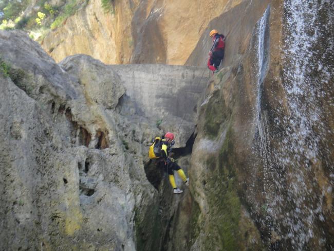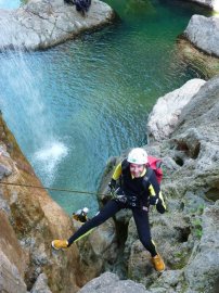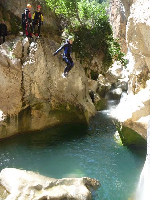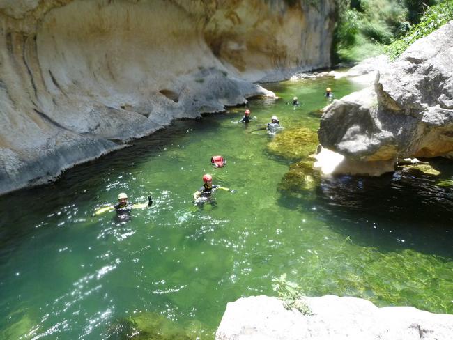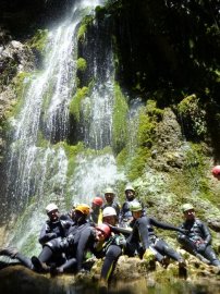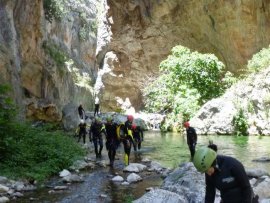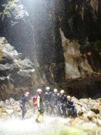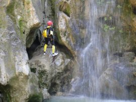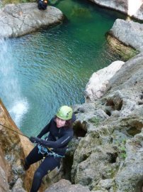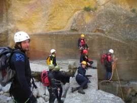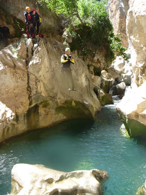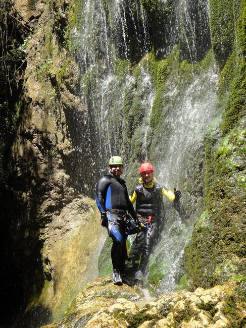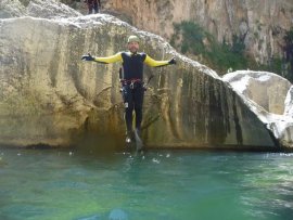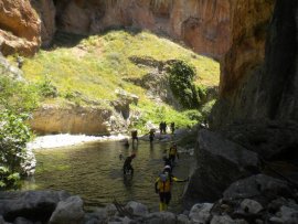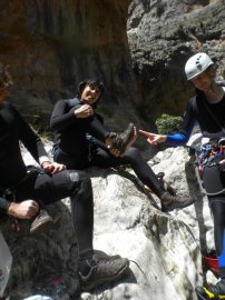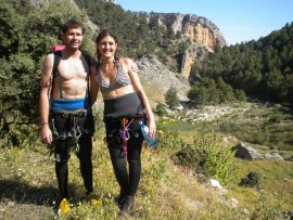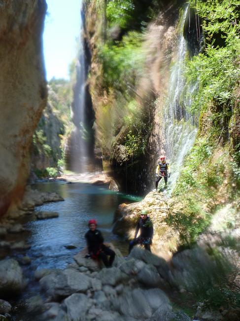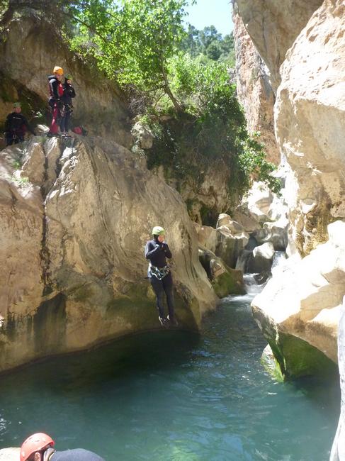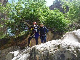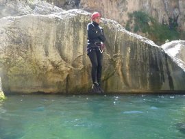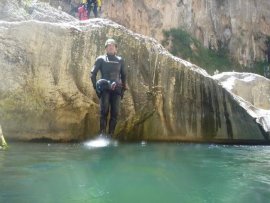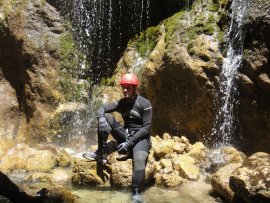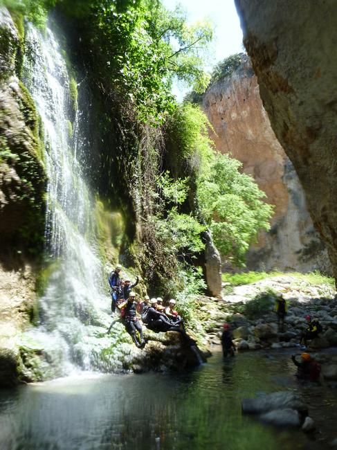 Fotos del V Curso de Descubrimiento de Barranquismo que tuvo lugar el 12-06-2012 en el Barranco de la Bolera, en el Parque Natural de la Sierra de Cazorla, Segura y las Villas (Jaén), curso organizado por el Grupo Vértigo y homologado por la Escuela Murciana de Espeleología, al que asistió Juan como técnico de la escuela.