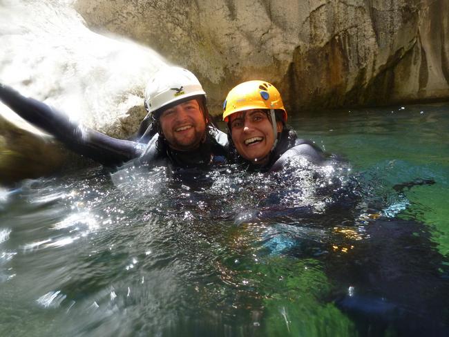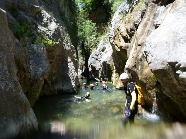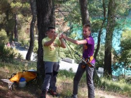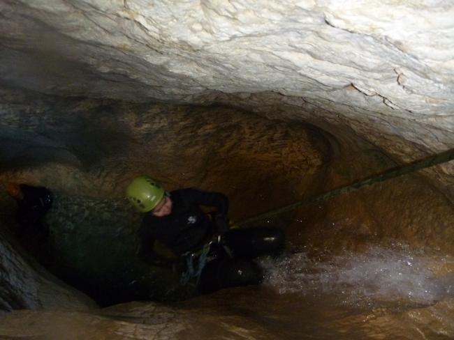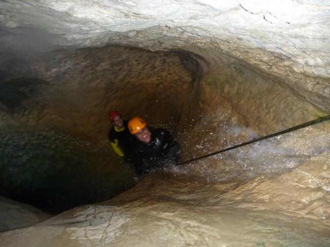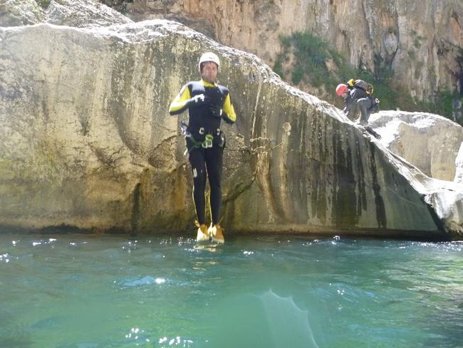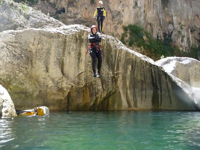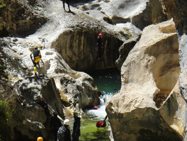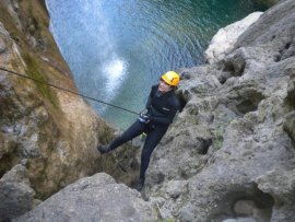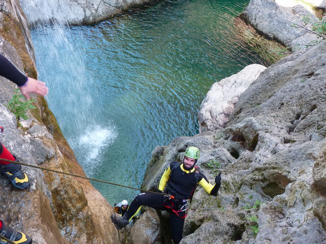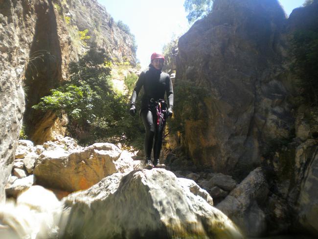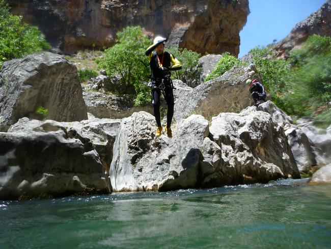 Fotos del V Curso de Descubrimiento de Barranquismo que tuvo lugar el 12-06-2012 en el Barranco de la Bolera, en el Parque Natural de la Sierra de Cazorla, Segura y las Villas (Jaén), curso organizado por el Grupo Vértigo y homologado por la Escuela Murciana de Espeleología, al que asistió Juan como técnico de la escuela.