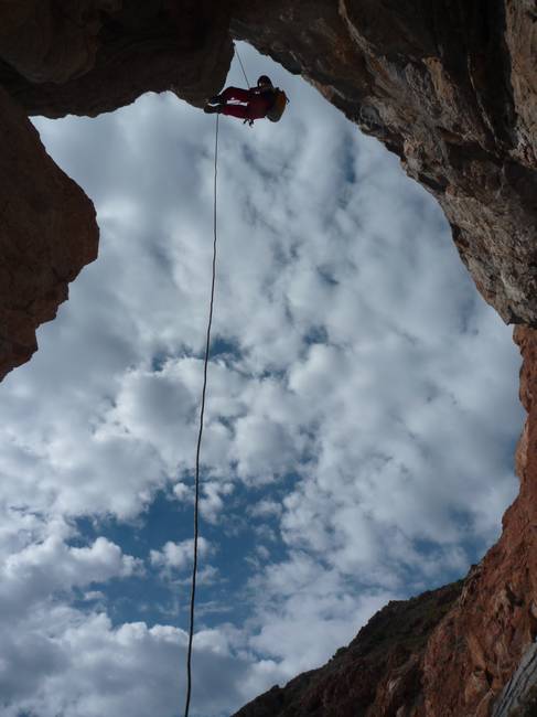 Fotos de la Espeleología en la Cueva del Arco-Orón I, que tuvo lugar el 12-10-2010 en el futuro Parque Regional de La Muela, Caño Tiñoso y Roldán, a la que asistió Juan, junto con el otro Juan de Arxhilasis, y a Pepe Seiquer, conocido escalador y alpinista murciano, a quien llevamos a conocer esta bonita cavidad de bastante dificil acceso, pero de bellas formaciones.