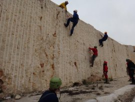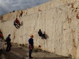 Fotos del I Curso de Iniciación a la Espeleología, organizado e impartido por el Grupo Vértigo y homologado por la Escuela Murciana de Espeleología de la FERM, que tuvo lugar los días 10, 17, 18 de noviembre y 1 de diciembre de 2012 en Murcia, la Cantera de los Losares (Cieza), la Sima de las Cabras (Fortuna) y la Sima del Pulpo (Cieza), al que asistieron 6 alumnos, entre ellos Josemi, Mª Ángeles y Marta, siendo los profesores: Juan, Vicente (Arxhilasis), Miguel Ángel (Proteus) y Mª José (Hinnieni).