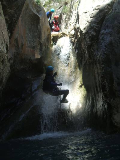 Fotos del Barranquismo en el Barranco de Abdet I y el Estrecho de las Peñas I, que tuvo lugar el 19-05-2007 en la Sierra de Aitana (Alicante), a la que asistieron María, Floren, Eloísa, Amelia y Juan, además del Grupo Arxhilasis. Por la mañana disfrutamos del Barranco de Abdet, y por la tarde del Estrecho de las Peñas, ambos con bastante agua.
