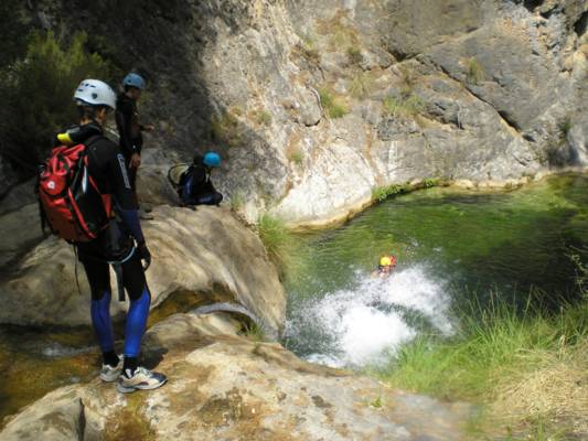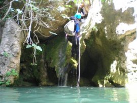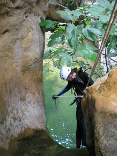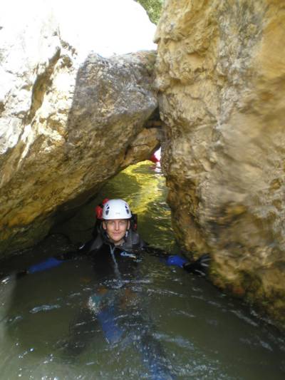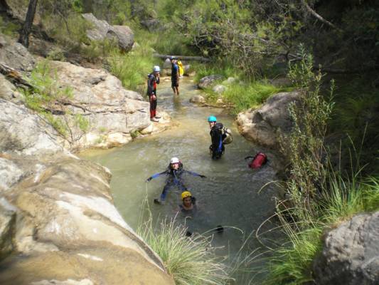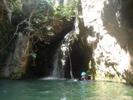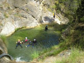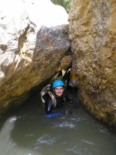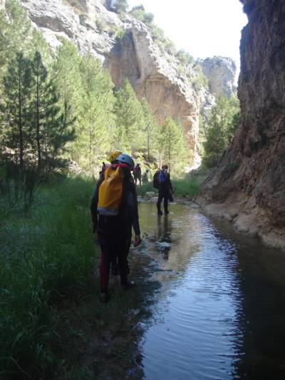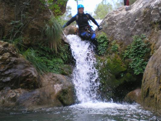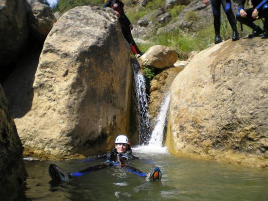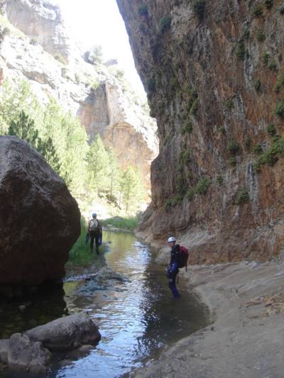 Fotos del Barranquismo en el Arroyo de la Espinea, que tuvo lugar el 18-08-2007, en el Parque Natural de la Sierra de Cazorla, Segura y las Villas (Jaén) y el Parque Natural de los Calares del Mundo (Albacete), al que asistieron Juan y Floren, en una actividad conjunta con el Grupo Arxhilasis. Bonito arroyo y cañón, pero tiene poco de barranco.