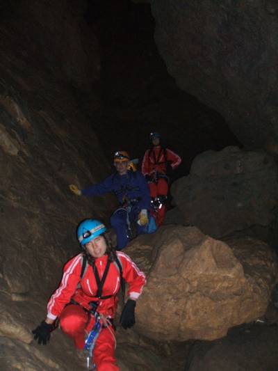 Fotos de la I Acampada Espeleológica del Grupo Vértigo que tuvo lugar en Antequera (Málaga) y en la Sierra de la Camorra (Mollina, Málaga) los días 13 y 14 de octubre de 2007, a la que asistieron Eloísa, María, Juan y Vicente (Arxhilasis). Bajamos a dos espectaculares simas: la Sima del Águila o de los Gours (-112 metros, Antequera) y Sima Begoña (-34 metros, Mollina), disfrutamos de lo lindo y nos reimos un montón. El segundo día gozamos de la compañía de Mariajo (forera PSP, con la que estuvimos en el 1er encuentro PSP). Agradecemos su colaboración, así como la de Davidespeleo, Geochema, Vitelchus e Iñakiespeleo. Abajo podéis ver las topos de ambas simas.