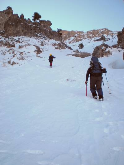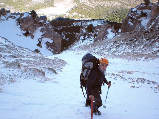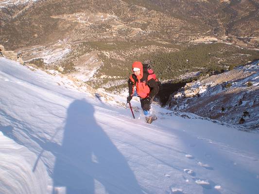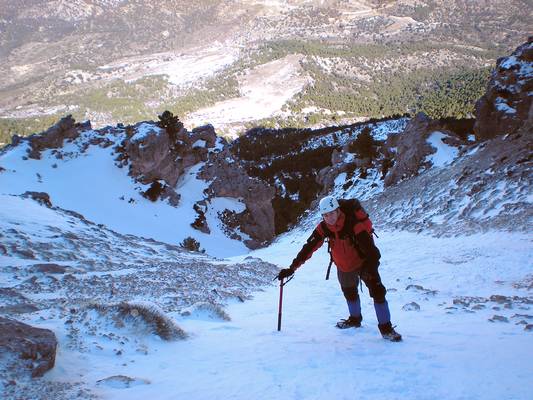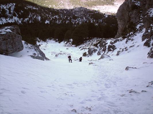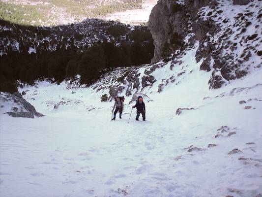 Fotos de la Ascensión a la Sagra III, que tuvo lugar en la provincia de Granada el 23-12-2008, a la que asistieron Juan junto con Vicente y Perdi de Arxhilasis, a los que posteriormente tras la ascensión se unieron Floren y Viqui, y más tarde María. La subida y la bajada la hicimos por el embudo, con nieve dura la mayor parte del tiempo.
