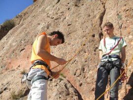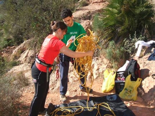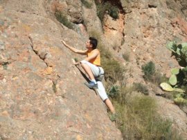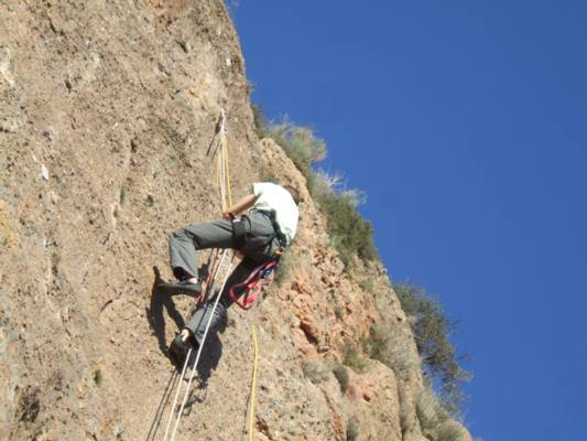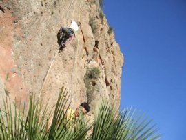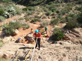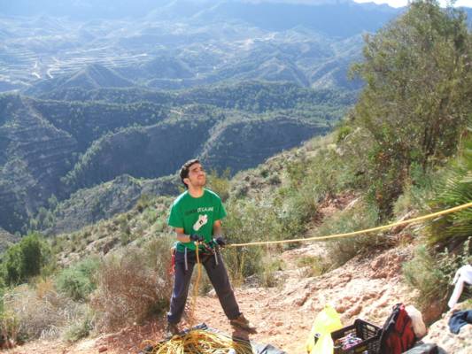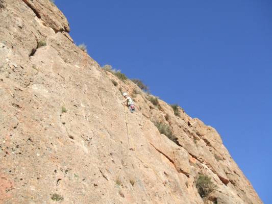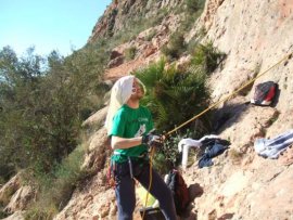 Fotos de la iniciación a las Técnicas de Progresión Vertical en el Paisaje Lunar I, que tuvo lugar el 03-01-2007 en el Parque Regional de Carrascoy y El Valle, a las que asistieron Pablo, Pablo Francés, Marina y Juan. Allí hicimos escalada en la vía "Espolón de la sinfonía" de grado V+ y 16 metros de longitud, rapel y progresión vertical con ascensores (puño y croll) para practicar para futuras espeleologías en cuevas y simas.