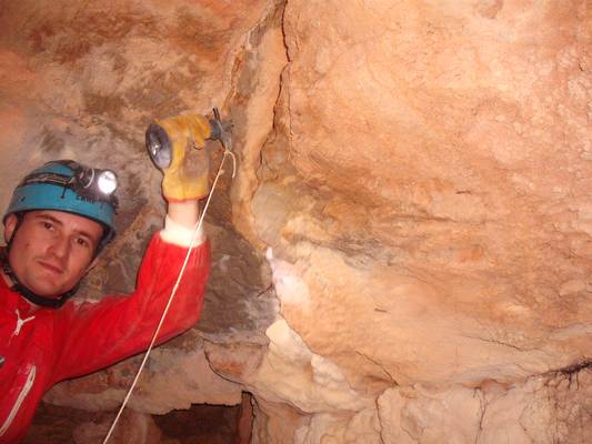 Fotos de la Espeleología en Sima Marina II, que tuvo lugar el 21-3-2009 en la Sierra de Ricote, a la que asistieron Juan y Floren. Instalamos el primer pozo y conseguimos abrir más la entrada y la boca del pozo, de tal forma que ambos pudieron acceder a la cabecera del segundo pozo, donde instalaron dos spits y limpiaron la cabecera, dejando la exploración para otro dia. Una exploración posterior de Vicente, Fran y Perdi de Arxhilasis nos confirma una profundidad aproximada de 40 metros.