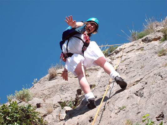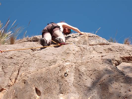 Fotos de la Escalada en el Valle XIV, que tuvo lugar el 14-04-09 en el Parque Regional de Carrascoy y el Valle, a la que asistieron Eloísa y Juan, en un día del bando distinto. Escalamos las vías Fúmate el Inglés (IV+, 15m), El Canalla (V, 13m) y Viabit (V, 18m).